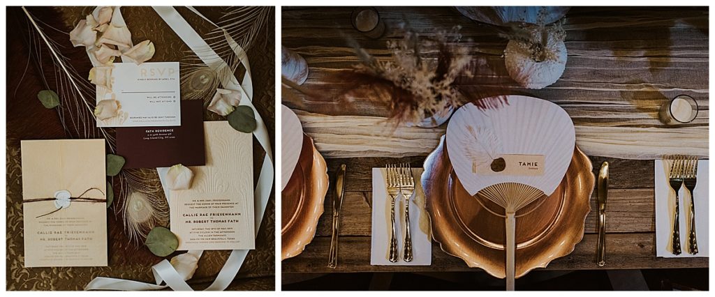 This New Braunfels wedding celebrated two people who traveled all the way from New York, and we loved celebrating with them and their fun, modern designs on their big day! Their Allen Farmhaus wedding was full of beautiful, detail-driven components, and her design must go down as one of my favorites! Every single detail, from the dried floral to the intricate hand fans, even down to the wax seals on the invitation suites and place cards done by Hans Design Studio were so eccentric and stunning!