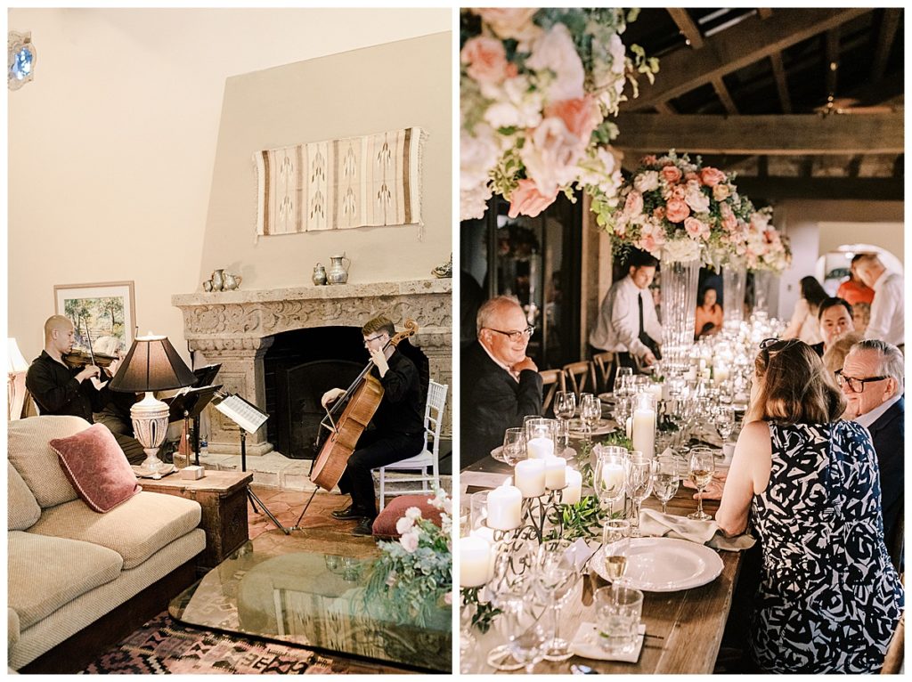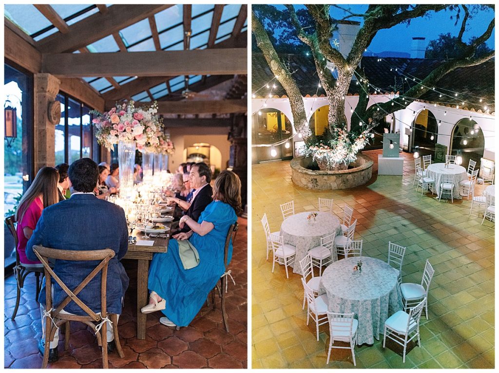 We utilized multiple parts of the family property to create a guest experience that flowed throughout the home. From the ceremony overlooking the rolling hills, to the intimate dinner inside the great room. The night concluded with cake and dancing out in the courtyard.